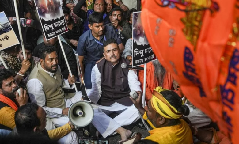 ভারতের পশ্চিমবঙ্গ রাজ্যের বিজেপি নেতা শুভেন্দু অধিকারীর নেতৃত্বে সোমবার (২০ ডিসেম্বর) কলকাতায় বাংলাদেশ ডেপুটি হাইকমিশনের সামনে বিক্ষোভ করেছে বিজেপির নেতা শুভেন্দু অধিকারী। ভারতীয় ইকোনমিক টাইমসের প্রতিবেদন অনুসারে, বিক্ষোভকালে শুভেন্দু বলেছেন, কলকাতায় বাংলাদেশ ডেপুটি হাইকমিশন থাকতে দেওয়া হবে না।