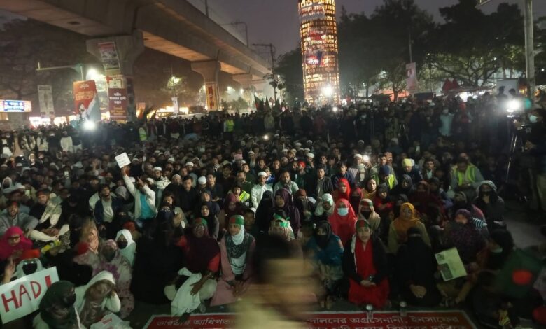 জুলাই বিপ্লবী শহীদ শরীফ ওসমান হাদি হত্যার বিচার দাবিতে অনির্দিষ্টকালের জন্য ঘোষিত অবরোধ কর্মসূচির অংশ হিসেবে রাতভর শাহবাগ মোড়ে অবস্থান করবেন বিক্ষোভকারীরা। ইনকিলাব মঞ্চ জানিয়েছে, বিচার নিশ্চিত না হওয়া পর্যন্ত তারা শাহবাগ ছাড়বে না।