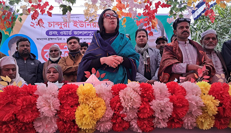 শুক্রবার (০২ জানুয়ারি) বিকেলে ব্রাহ্মণবাড়িয়ার বিজয়নগরের চান্দুরা ইউনিয়নে জালালপুর গ্রামে আয়োজিত এক মত বিনিময় সভা থেকে তিনি এ কড়া বার্তা দেন। রুমিন ফারহানা বলেন, ‘এবারের নির্বাচন টেন্ডারবাজি, বোমাবাজি, চাঁদাবাজি, ভূমিদস্যুতাসহ বিভিন্ন অপরাধের বিরুদ্ধে নির্বাচন। কেউ যদি মনে করে জবরদস্তি করে রাজনীতি করবে সেটা বর্তমানে সম্ভব নয়। তাই সবাইকে সাবধান করে দিয়ে বলতে চাই কেউ যদি জবরদস্তির রাজনীতি করতে চায় জনগণ তাদেরকে দাঁতভাঙ্গা জবাব দেবে।’