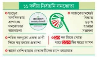 জামায়াতে ইসলামীসহ ১১ দলীয় নির্বাচনি জোটে চরমোনাইয়ের পীরের নেতৃত্বাধীন ইসলামী আন্দোলন বাংলাদেশের সঙ্গে আসন বণ্টন নিয়ে এখনো দরকষাকষি চলছে। তবে এ নিয়ে সৃষ্ট টানাপোড়েন প্রায় কেটে গেছে। প্রধান দুই দলের পক্ষ থেকেই শেষ পর্যন্ত সমঝোতার ইঙ্গিতই দেওয়া হচ্ছে। উভয় দলই ছাড়ের মানসিকতা নিয়ে সমঝোতার পক্ষে। কারণ, আসন নিয়ে টানাপোড়েন থাকলেও কোনো দলই জোট ভাঙার দায় নিতে চাইছে না।