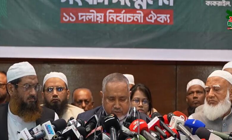 আসন্ন ত্রয়োদশ জাতীয় সংসদ নির্বাচনকে ঘিরে জামায়াতে ইসলামীর নেতৃত্বাধীন ১১ দলীয় নির্বাচনি ঐক্য জোটের আসন ভাগাভাগি চূড়ান্ত হয়েছে। বৃহস্পতিবার (১৫ জানুয়ারি) রাত ৯টার দিকে রাজধানীর ডিপ্লোমা ইঞ্জিনিয়ার্স ইনস্টিটিউশনে এক সংবাদ সম্মেলনে এ তথ্য জানিয়েছেন বাংলাদেশ জামায়াতে ইসলামীর আমির ডা. শফিকুর রহমান।