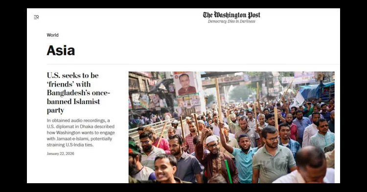<p>যুক্তরাষ্ট্র জামায়াতকে বন্ধু হিসেবে পেতে চাইছে, এমন তথ্য প্রকাশ করেছে ওয়াশিংটন পোস্ট। সংবাদমাধ্যমটি জানিয়েছে, বাংলাদেশের সবচেয়ে বড় ইসলামপন্থী দল জামায়াতে ইসলামী আগামী জাতীয় নির্বাচনে ইতিহাসের সেরা ফলাফল করার সম্ভাবনা রয়েছে। এ তথ্যের ভিত্তিতে মার্কিন কূটনীতিকরা দলটির সঙ্গে যোগাযোগ বাড়ানোর উদ্যোগ নিয়েছেন।</p>