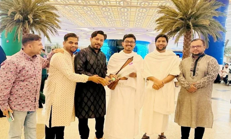 পবিত্র ভূমি সৌদি আরবে উমরাহ পালনের উদ্দেশ্যে তারা জেদ্দা এয়ারপোর্টে পৌঁছালে সংগঠনের নেতাকর্মীরা ফুল দিয়ে তাদের স্বাগত জানান।