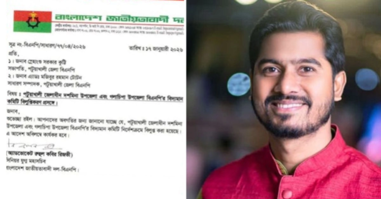 উল্লেখ্য, বিএনপির কেন্দ্রীয় সিদ্ধান্ত অনুযায়ী জোটের প্রার্থী হিসেবে গণঅধিকার পরিষদের সভাপতি নুরুল হক নুর পটুয়াখালী-৩ আসনে নির্বাচন করছেন। তবে তাকে নির্বাচনে সহায়তা না করে বিএনপির নেতাকর্মীদের একটি অংশ স্বতন্ত্র প্রার্থী হাসান মামুনের পক্ষে কাজ করছে। ফলে সাংগঠনিক কাজে নিষ্ক্রিয় থাকার অভিযোগে এ সিদ্ধান্ত নেওয়া হয়েছে বলে দলীয় সূত্রে জানা গেছে।