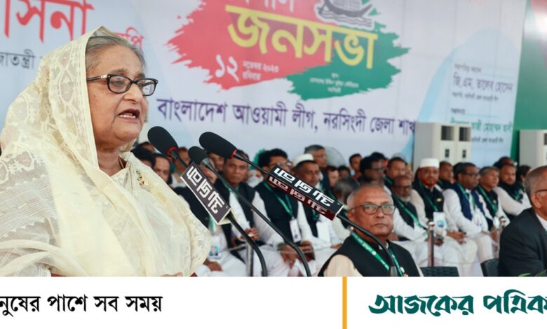 ১২ নভেম্বর ২০২৩ সালের রোববার নরসিংদীর মুসলেহ উদ্দিন ভূঁইয়া স্টেডিয়ামে জেলা আওয়ামী লীগ আয়োজিত জনসভায় এ কথা বলেন প্রধানমন্ত্রী।