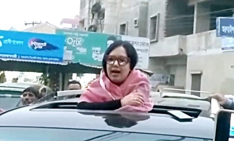 “বাধ্য হয়ে আজ আপনাদের দরজায় দরজায় গিয়েছি এবং শেষ মেশ গাড়ীর উপরে দাঁড়িয়ে বক্তব্য দিচ্ছি”—এমন অভিযোগ করে ব্রাহ্মণবাড়িয়া-২ আসনের স্বতন্ত্র সংসদ সদস্য প্রার্থী ও বিএনপির বহিষ্কৃত নেত্রী ব্যারিস্টার রুমিন ফারহানা বলেছেন, তার পূর্বনির্ধারিত নির্বাচনি পথসভার মঞ্চ ভেঙে দিয়েছে প্রতিপক্ষের লোকজন।