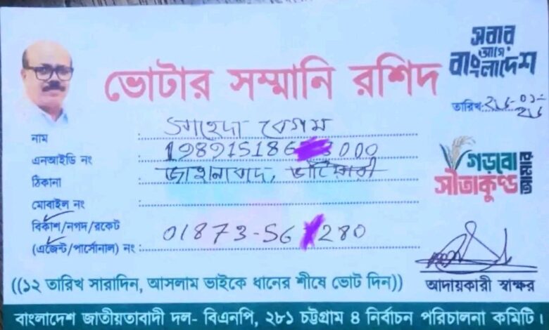 গুপ্তভাবে ভোটার সম্মানি রশিদের মাধ্যমে টাকা দিচ্ছে বিএনপি!