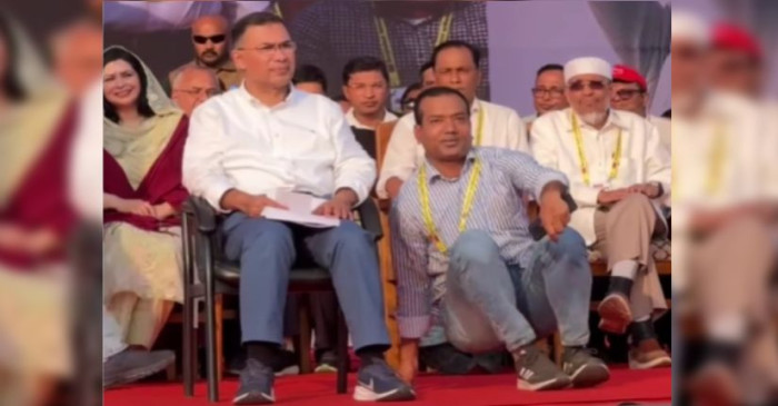 ত্রয়োদশ জাতীয় সংসদ নির্বাচন উপলক্ষে ময়মনসিংহে সমাবেশ করেছে বিএনপি। সমাবেশে স্টেজে তারেক রহমানের পায়ের কাছে ছাত্রদল সভাপতি রাকিবুল ইসলাম রাকিবের বসার চেষ্টা নিয়ে সামাজিক যোগাযোগমাধ্যমে ব্যাপক ট্রল হয়েছে। এ ঘটনার ব্যাখ্যা দিয়েছেন ছাত্রদল সভাপতি।