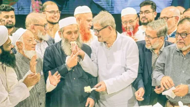 জামায়াতের নায়েবে আমিরের মুখে কেক তুলে বিএনপি মহাসচিব মির্জা ফখরুল ইসলাম